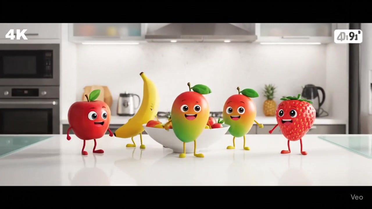 Veo 3 Prompt – Animated Fruit Characters in Modern Kitchen
