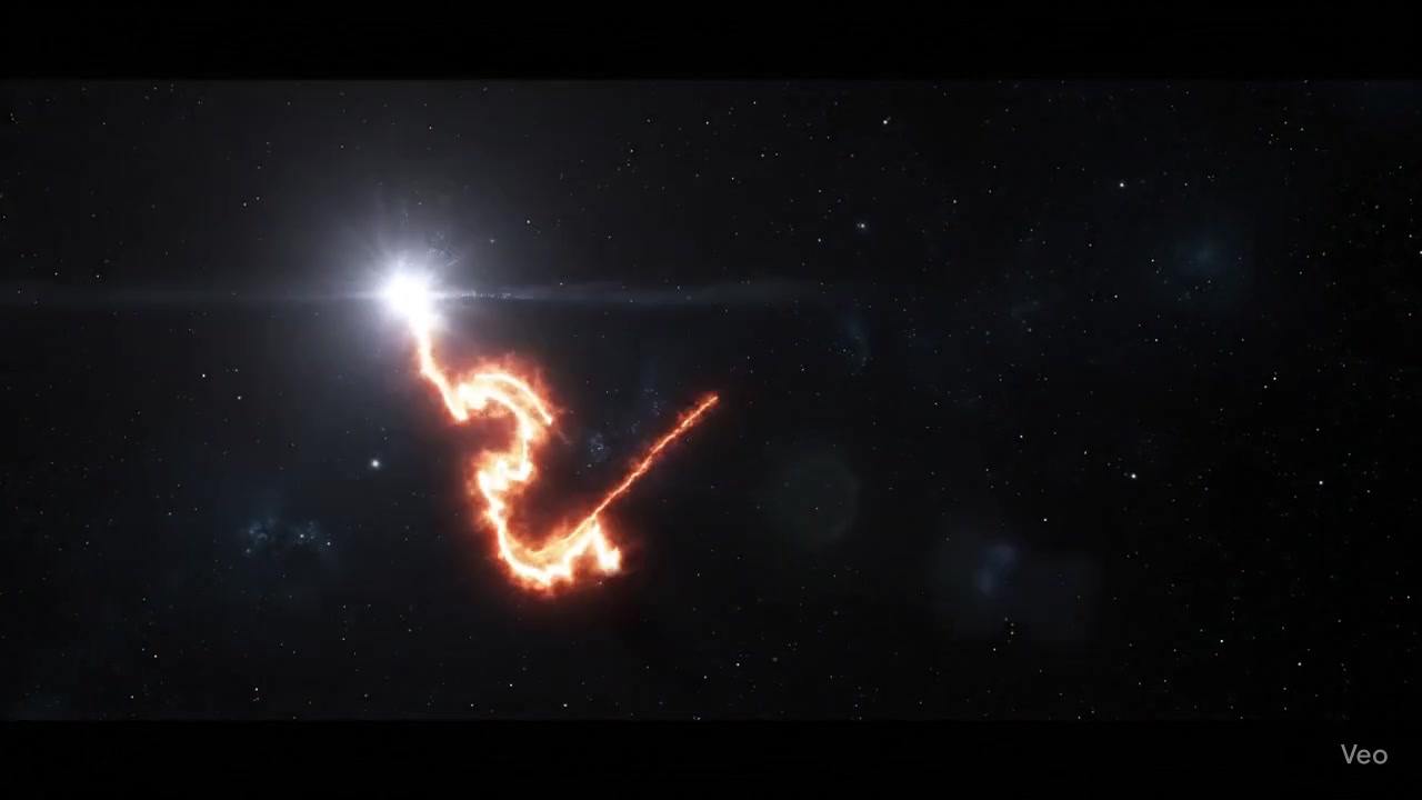 A captivating, high-resolution video begins with a single, brilliant star-like point of light appearing and hovering in a dark, ethereal space. The light starts to move with a powerful, deliberate motion, leaving a fiery, glowing trail behind it as it begins to trace the magnificent form of a roaring lion. The lines are bold and dynamic, capturing the lion's mane, powerful muscles, and open jaw. The sound of a deep, resonant roar accompanies the drawing process. As the final glowing line is drawn, the light flashes intensely, and in a breathtaking instant, the luminous outline transforms into a photo-realistic, majestic lion, roaring silently with its mane flowing in an unseen wind. The camera slowly zooms in on the lion's face, highlighting the intricate details of its fur, eyes, and teeth.