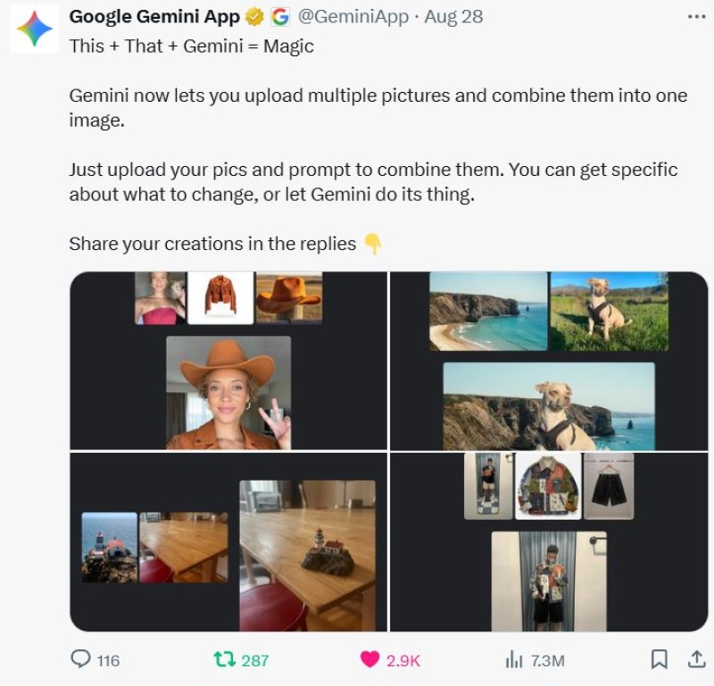 Gemini now lets you upload multiple pictures and combine them into one image.