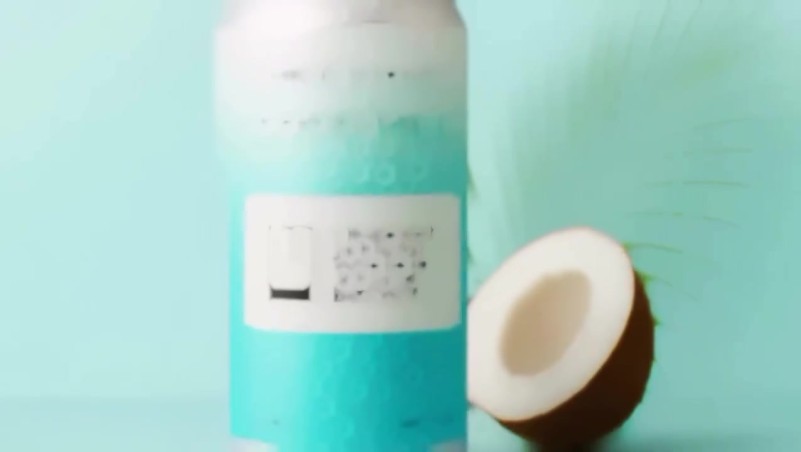 A high-speed cinematic shot of a coconut cracking open in mid-air, white creamy coconut milk splashing out dynamically with realistic fluid physics. Sunlight reflecting through the water droplets, tropical palm leaves swaying in the background with a soft breeze, 4k, highly detailed, photorealistic.